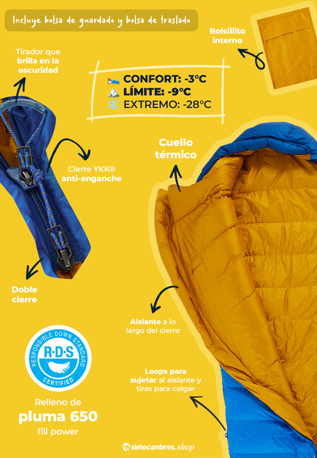 ⭐ Con relleno 650 fill power down certificado RDS, cálido y comprimible.