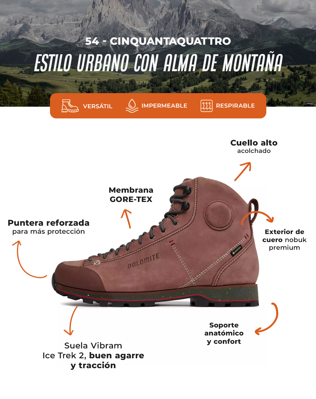 🔹 Suela: Dolomite Brenta by Vibram® – Goma Ice Trek 2 para máxima tracción