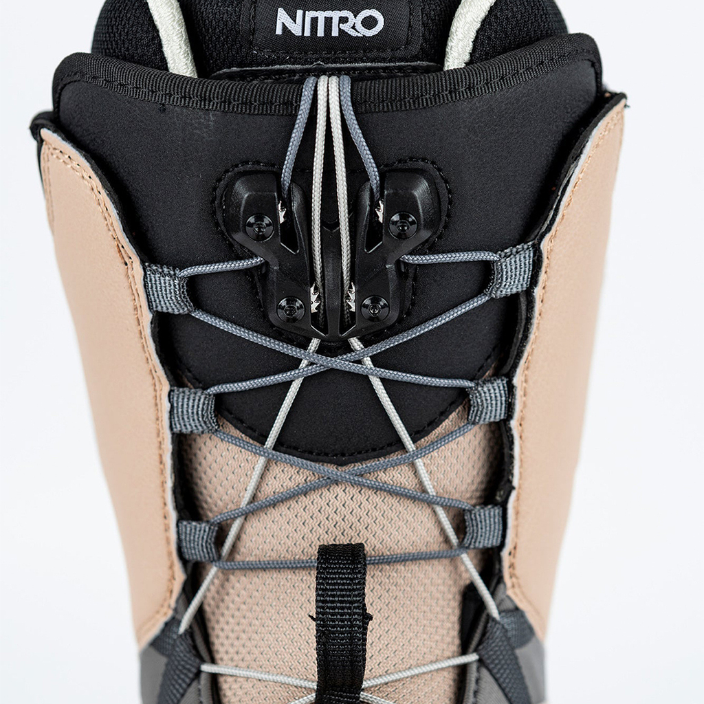 El destacado sistema TLS de Nitro revoluciona el ajuste gracias a dos zonas de ajuste independientes, que permiten atar y liberar las botas de forma rápida y segura. Sus cordones Dyneema® de baja fricción, las cómodas bolsitas para guardar las manijas y el sistema Bail Out, hacen que atar y soltar las botas sea más fácil que nunca.
