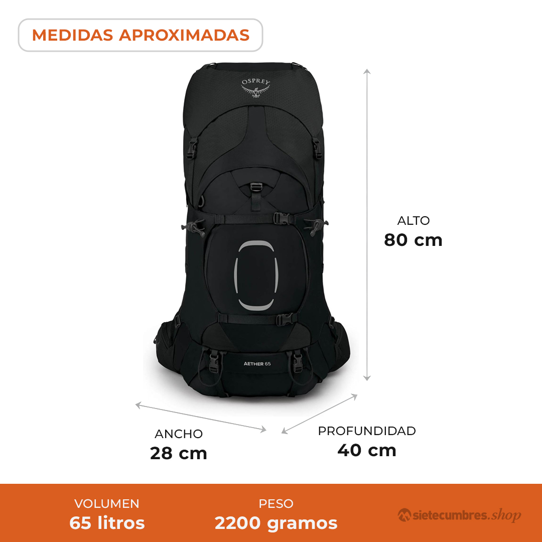 📏 S/M – Volumen: 65 L | Dimensiones: 80 × 40 × 28 cm | Peso: 2,23 kg